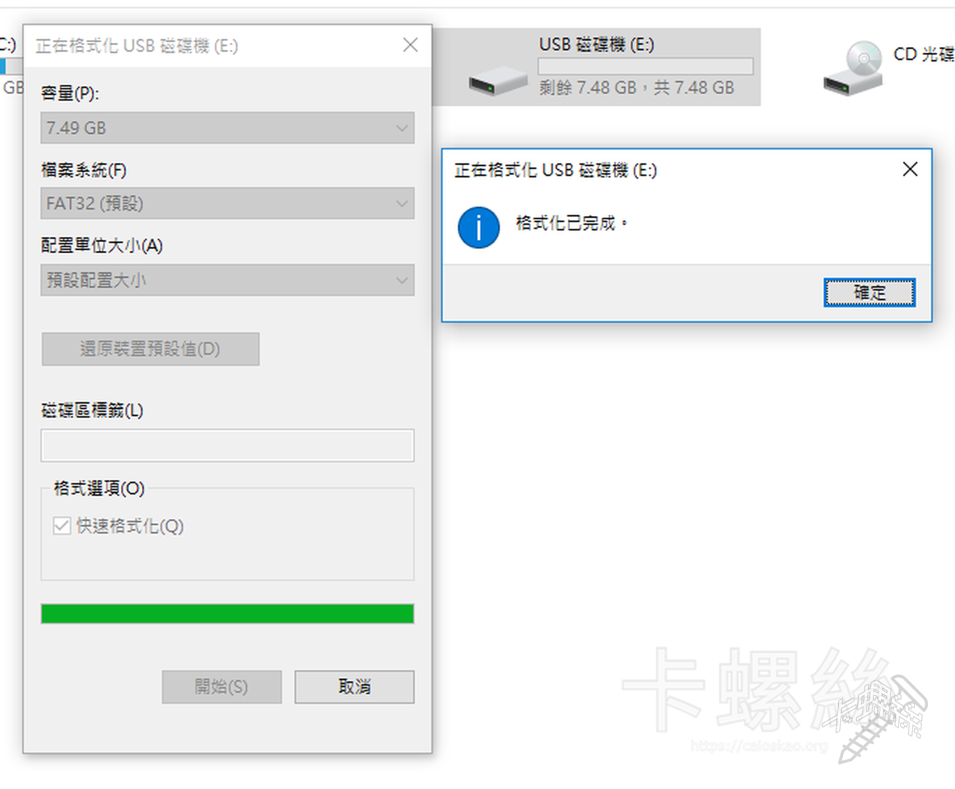 現在將隨身碟再度格式化,並且將快速格式化取消,然後進行掃描。