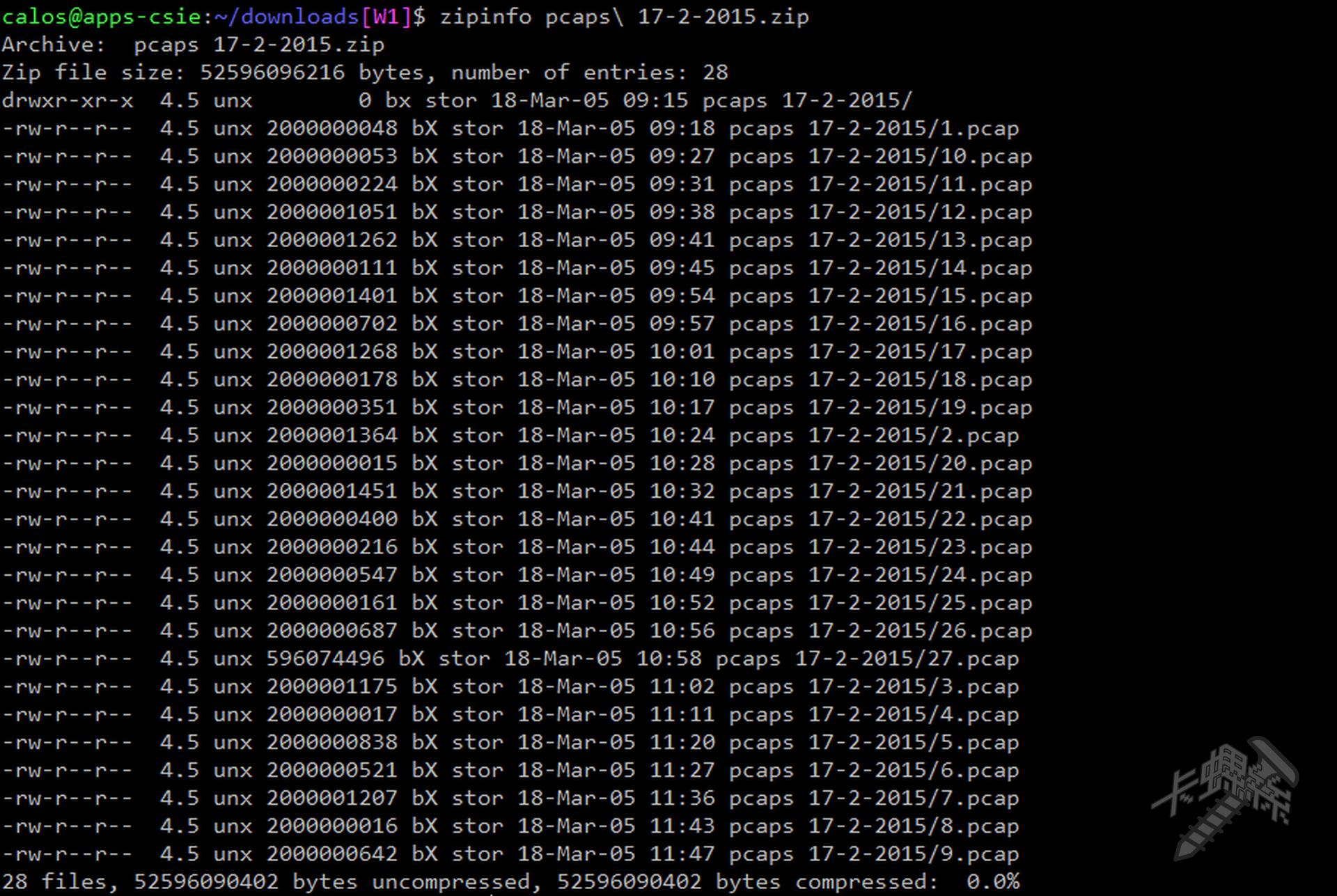 zipinfo為unzip套件附帶的指令,與unzip -l的差異只有輸出資訊的格式。