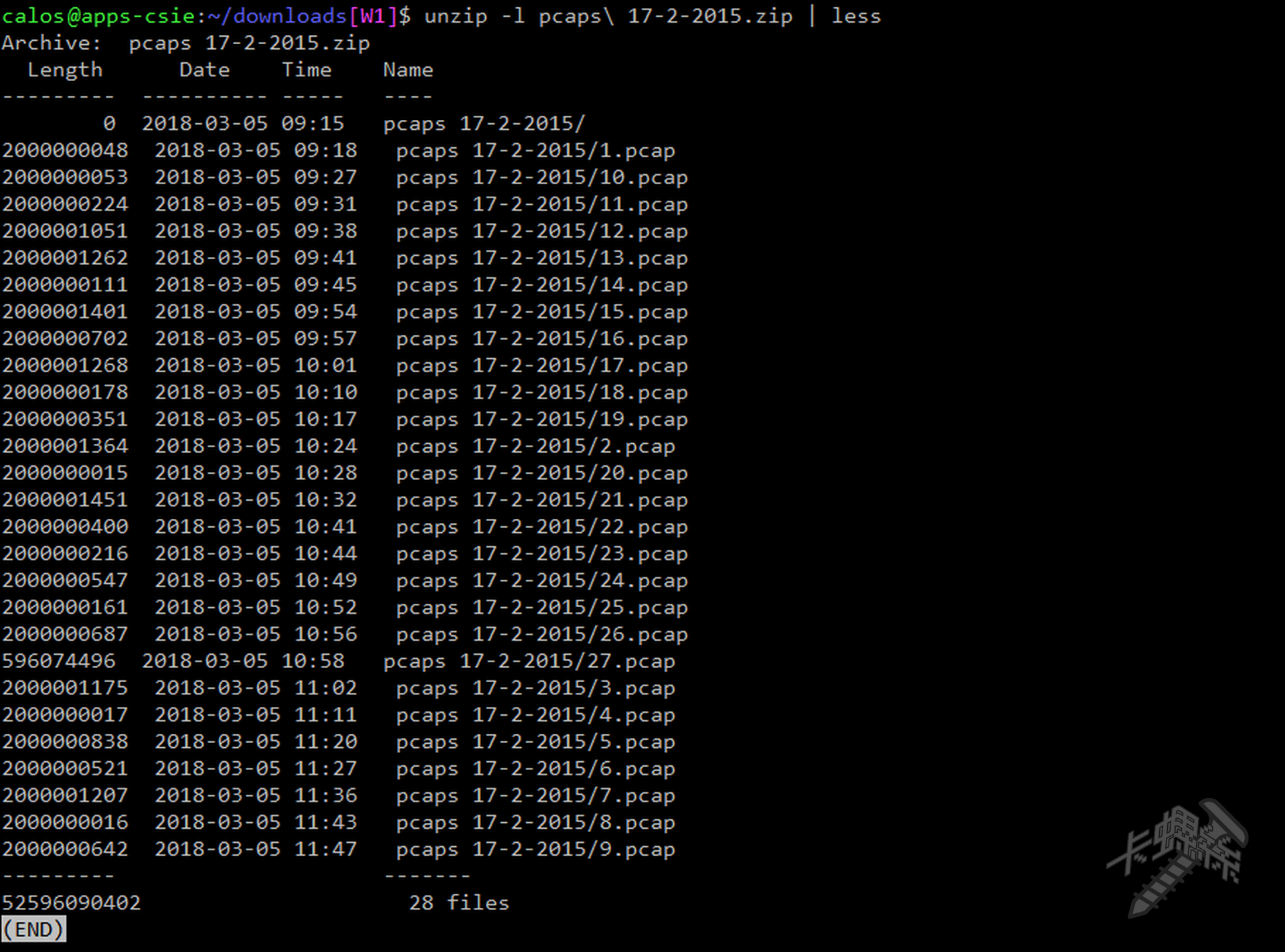 unzip是用於解開 ZIP 壓縮檔的指令,而參數-l為列出壓縮檔內的檔案清單而不進行解壓縮。