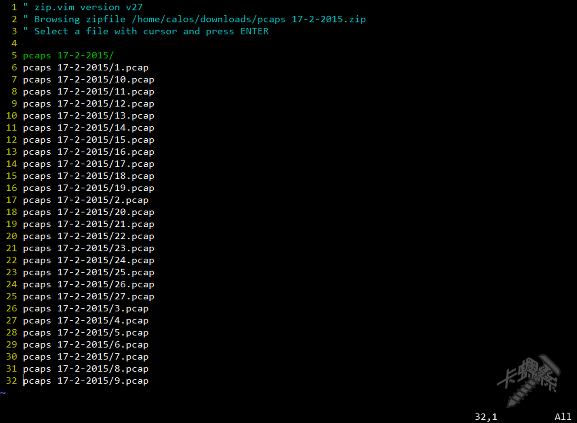 vim是一套流行於程式開發的文字編輯器,內建 ZIP 檔案瀏覽功能,需要查看 ZIP 壓縮檔內某個檔案的內容的話,筆者較推薦使用 VIM,因為在 VIM 的 ZIP 瀏覽模式下可以藉由移動光標到你想要查看的檔案後按一下 Enter,就可以顯示檔案內容,而不用先解壓縮。