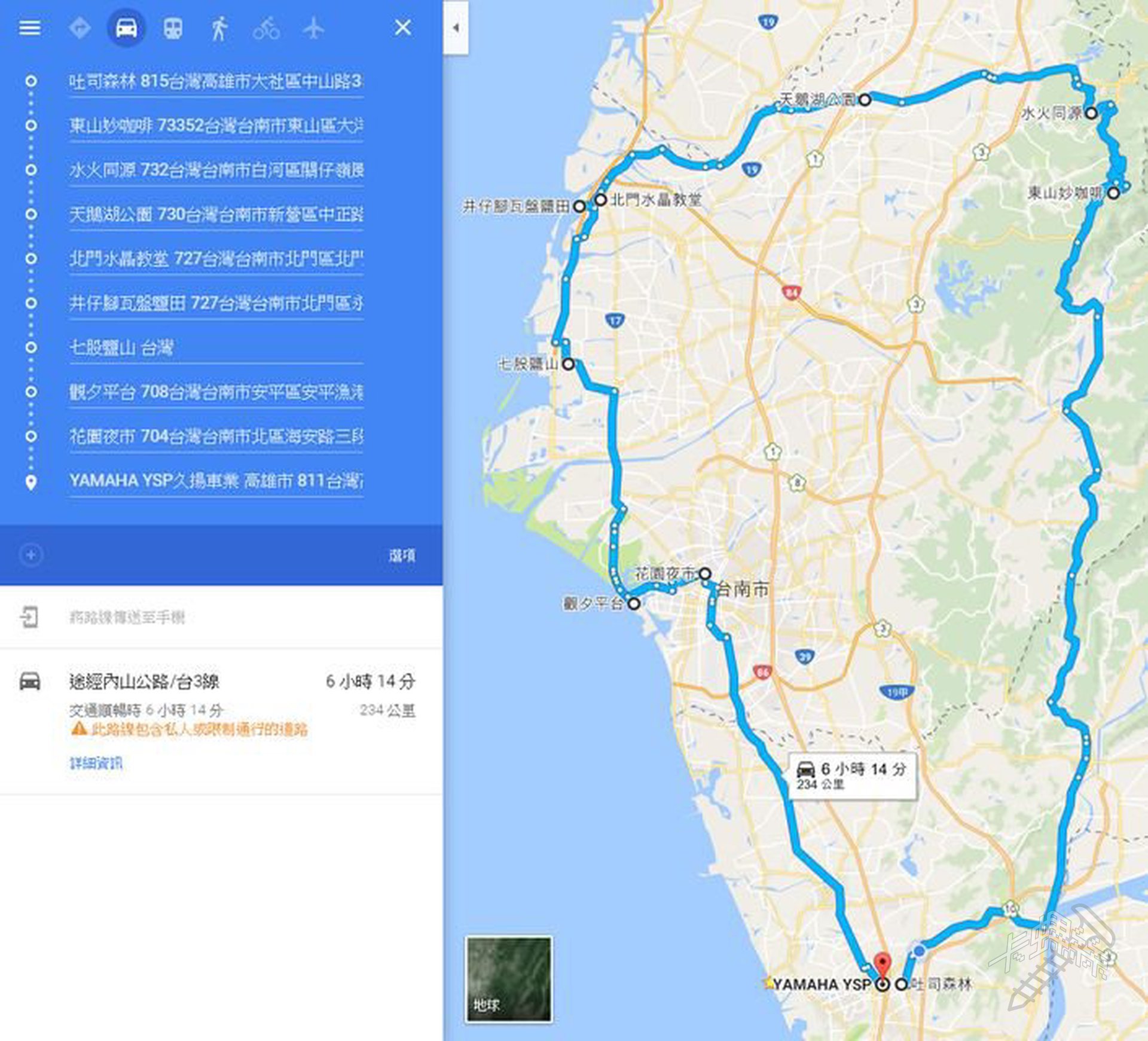 由於平常秉持著假日就是要睡飽飽的好習慣,所以規劃的試乘路線本來是預定下午再出發,然後就先劃了這樣: